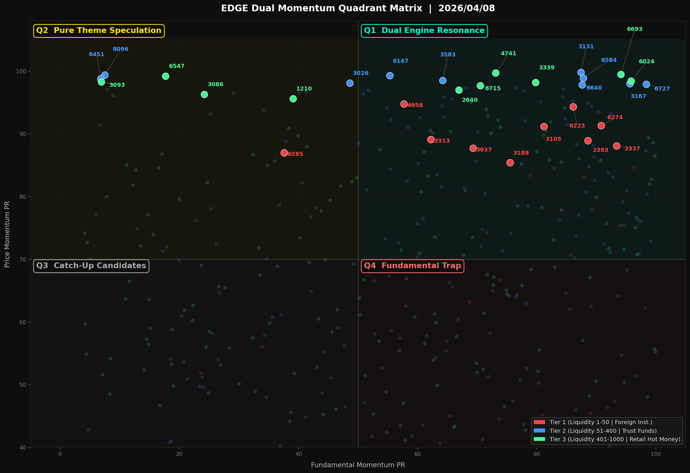 The Y-axis is the "EDGE Momentum PR Score" (Momentum), representing the intensity of capital pursuit;
