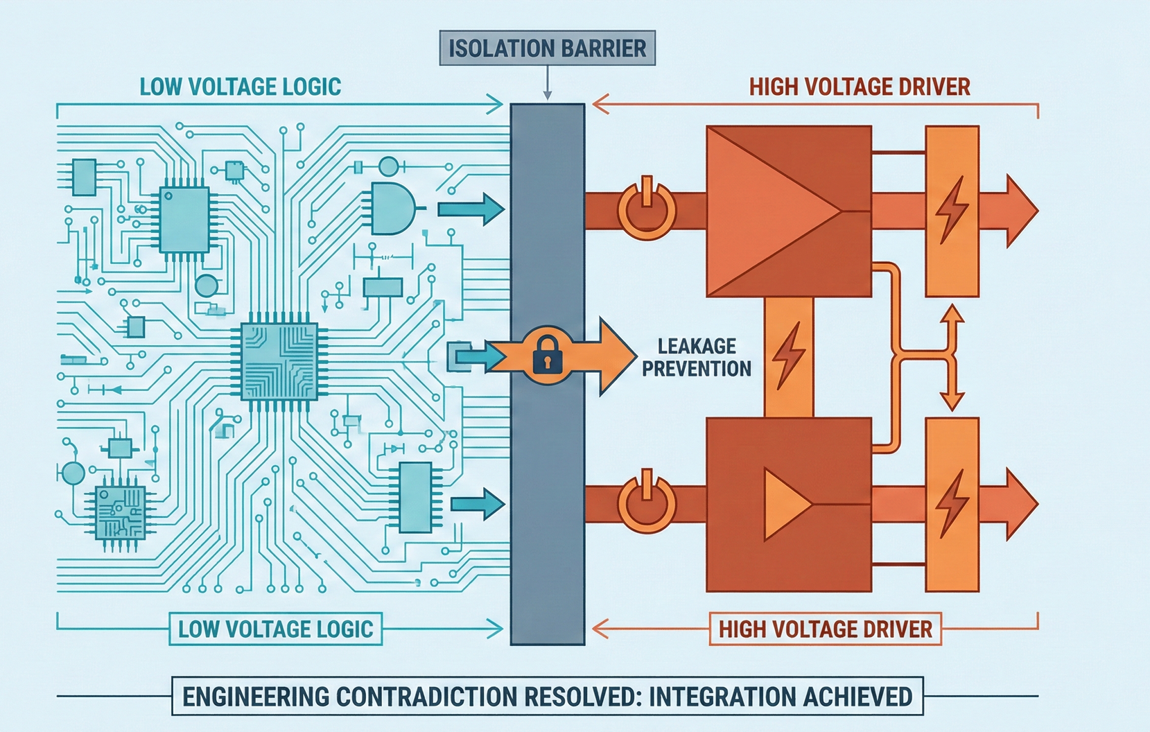 Complex "isolation layers" and "level shifters" must be designed in between to prevent high voltage from leaking and burning out the low-voltage sections.