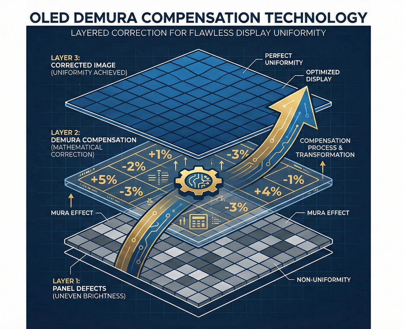 To "suppress" Pixel B, record "-3% voltage." This map is burned into the Flash memory (either external or embedded in the chip). This is why high-end OLED DDIs need integrated Flash.