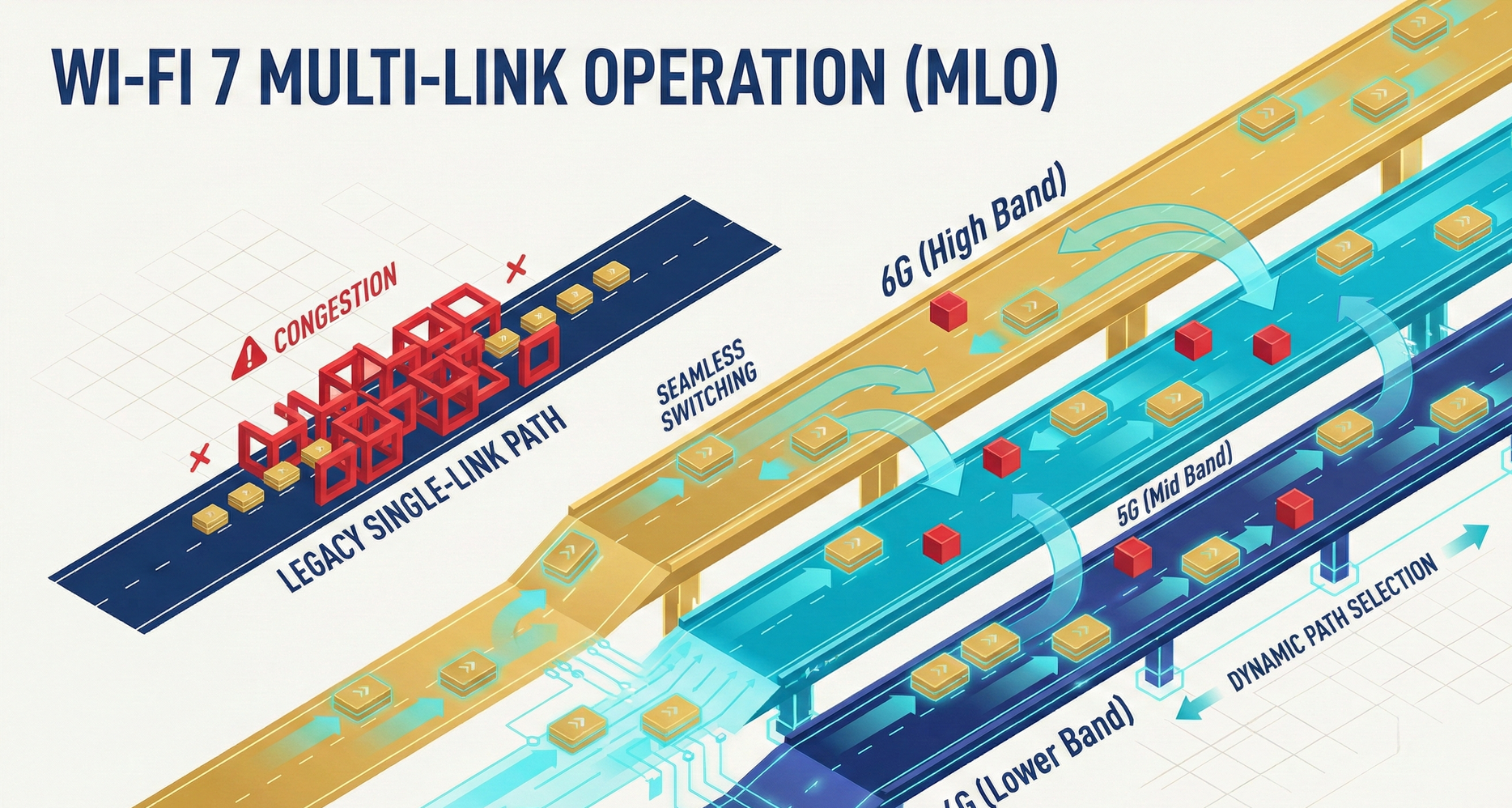 Previously (Wi-Fi 6): You could only choose to drive on National Freeway 1 (2.4G) or National Freeway 3 (5G). Once chosen, you had to endure any traffic jams.