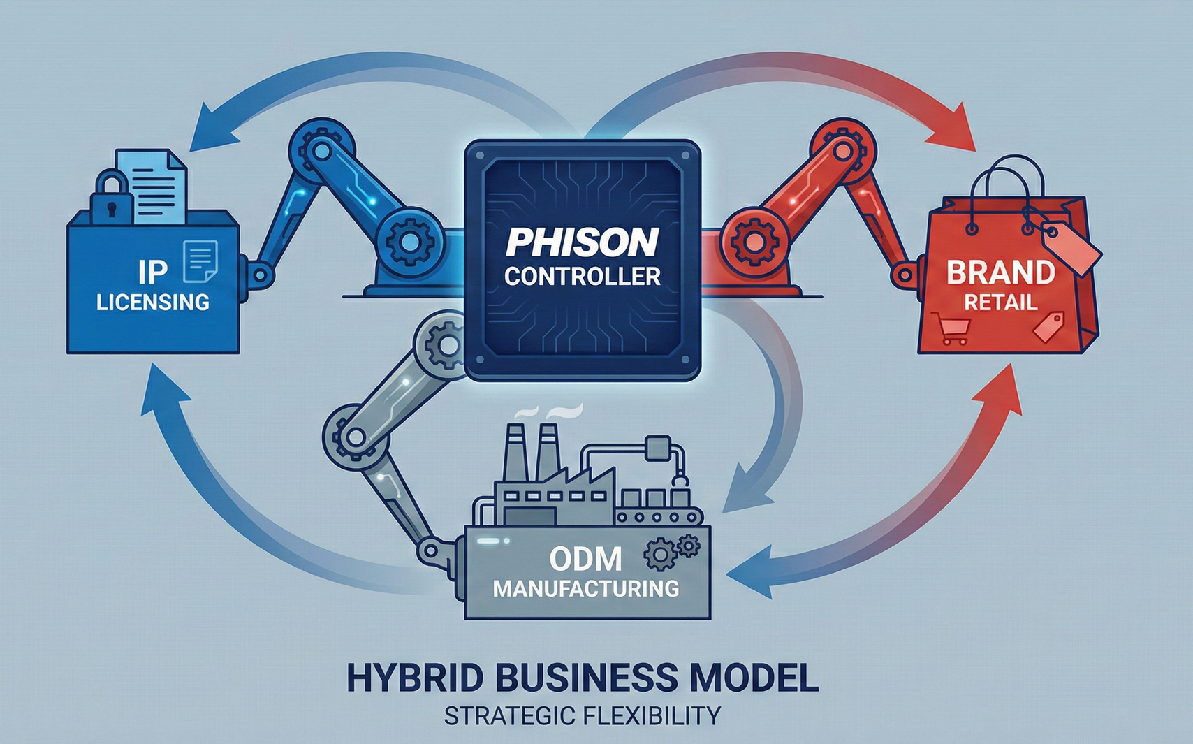 K.S. Pua chose an unconventional path: the Hybrid Model. This transformed Phison into a highly adaptable "chameleon."