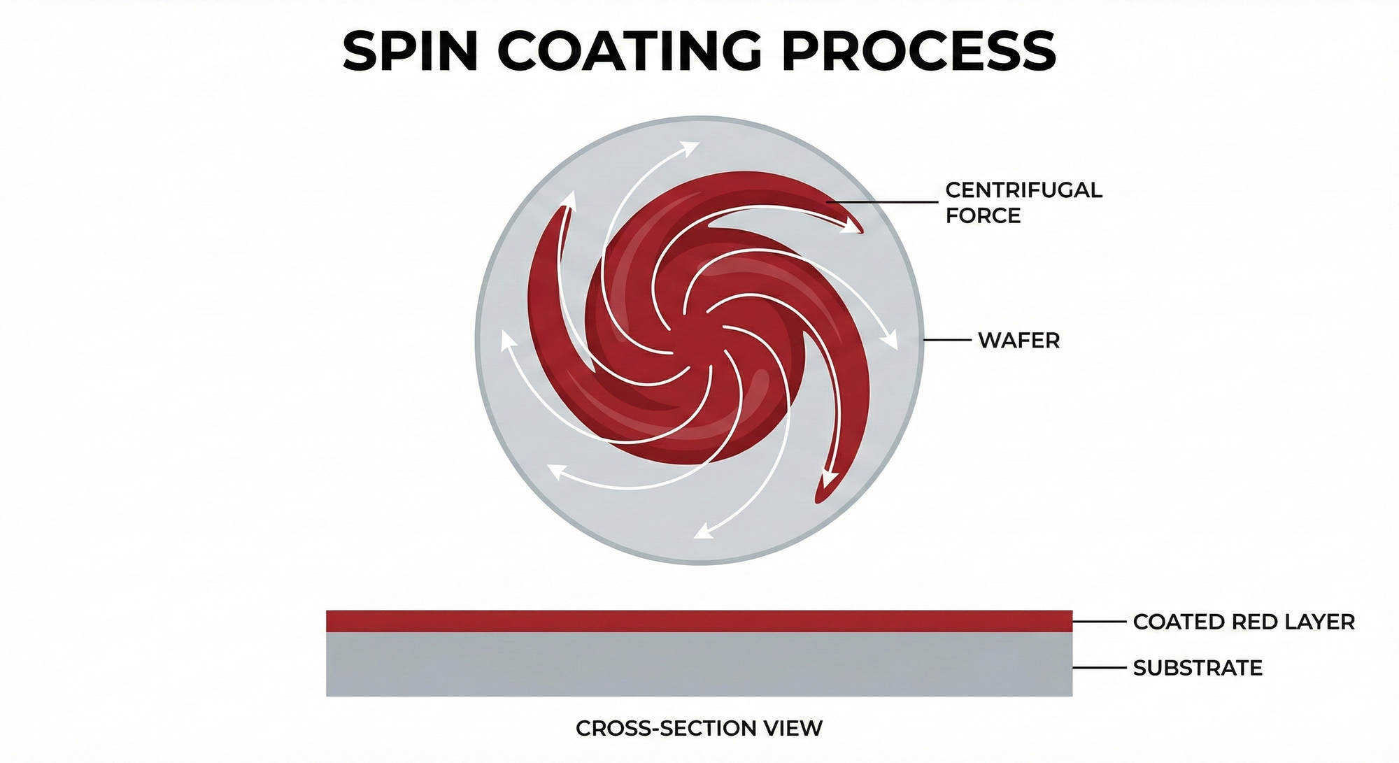 - Centrifugal Force: Powerful centrifugal force flings the photoresist liquid outwards, covering the entire wafer.