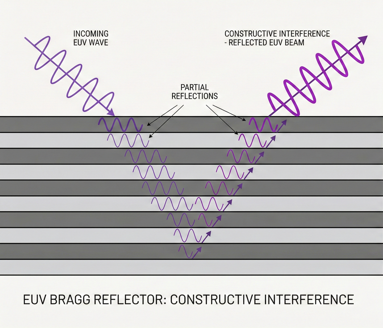 - A single Molybdenum-Silicon interface can only reflect a tiny amount of light.
