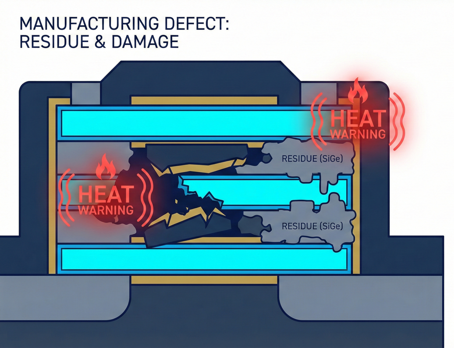- Variability Curse: Samsung's etching gas formula and equipment control had issues. Sometimes the SiGe wasn't completely dissolved, leaving residues in the gaps. Other times, the etching was too aggressive, eroding parts of the silicon nanosheets that were meant to be preserved.