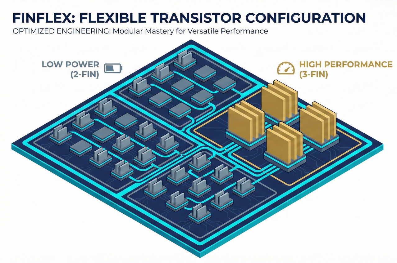 - Technical Details: In previous FinFET designs, only one fin configuration could typically be chosen for a given area (e.g., all 3 fins for high performance but high power consumption).
