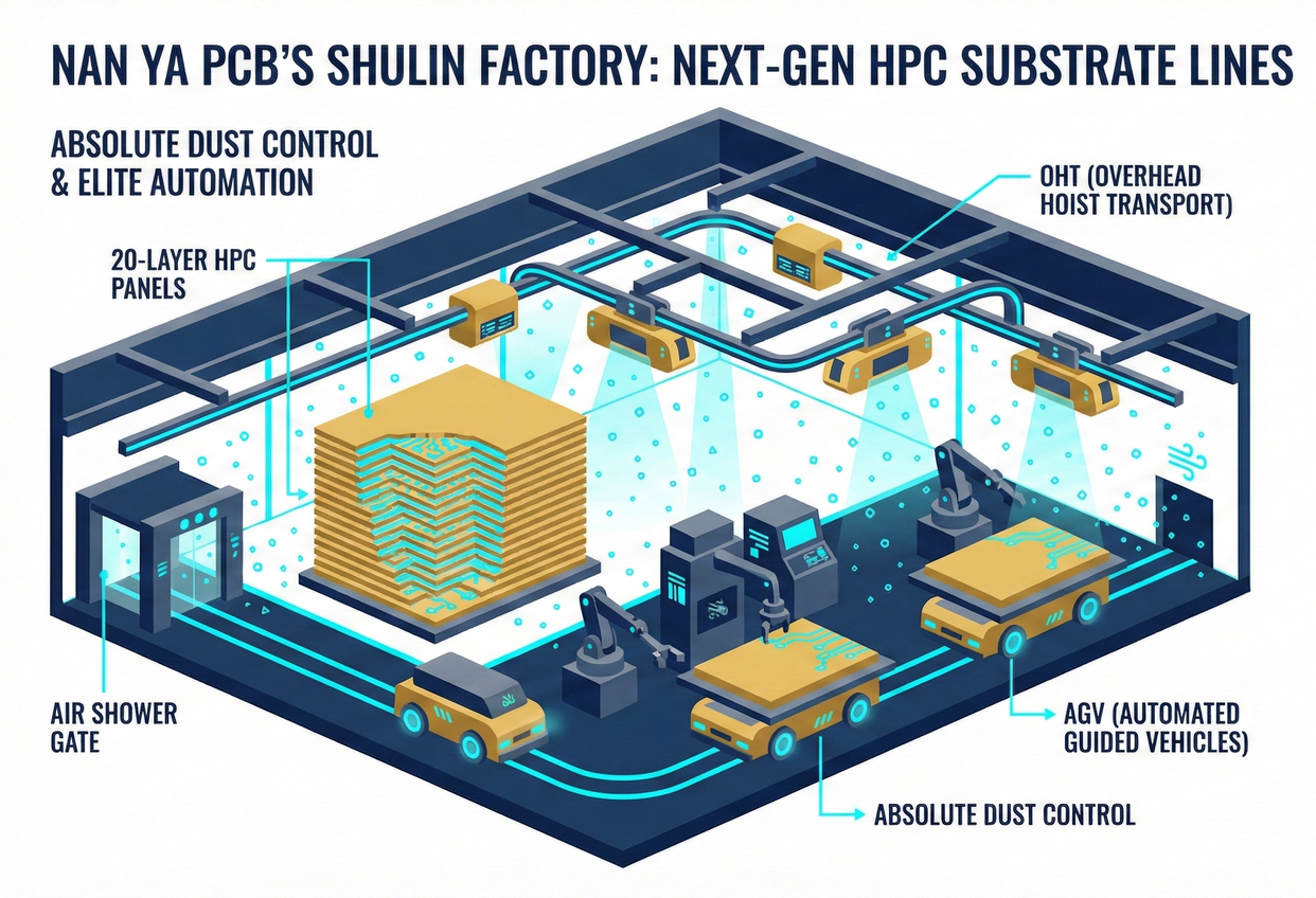 - Specialization in High Layer Counts and Large Areas: The equipment configuration at the Shulin plant was designed from the outset to produce extremely large, high-end ABF substrates with 16 to 20 layers or more. The commissioning of this new plant signifies Nanya PCB's official acquisition of the hard power to challenge Unimicron and the two Japanese giants at the top-tier AI substrate table.