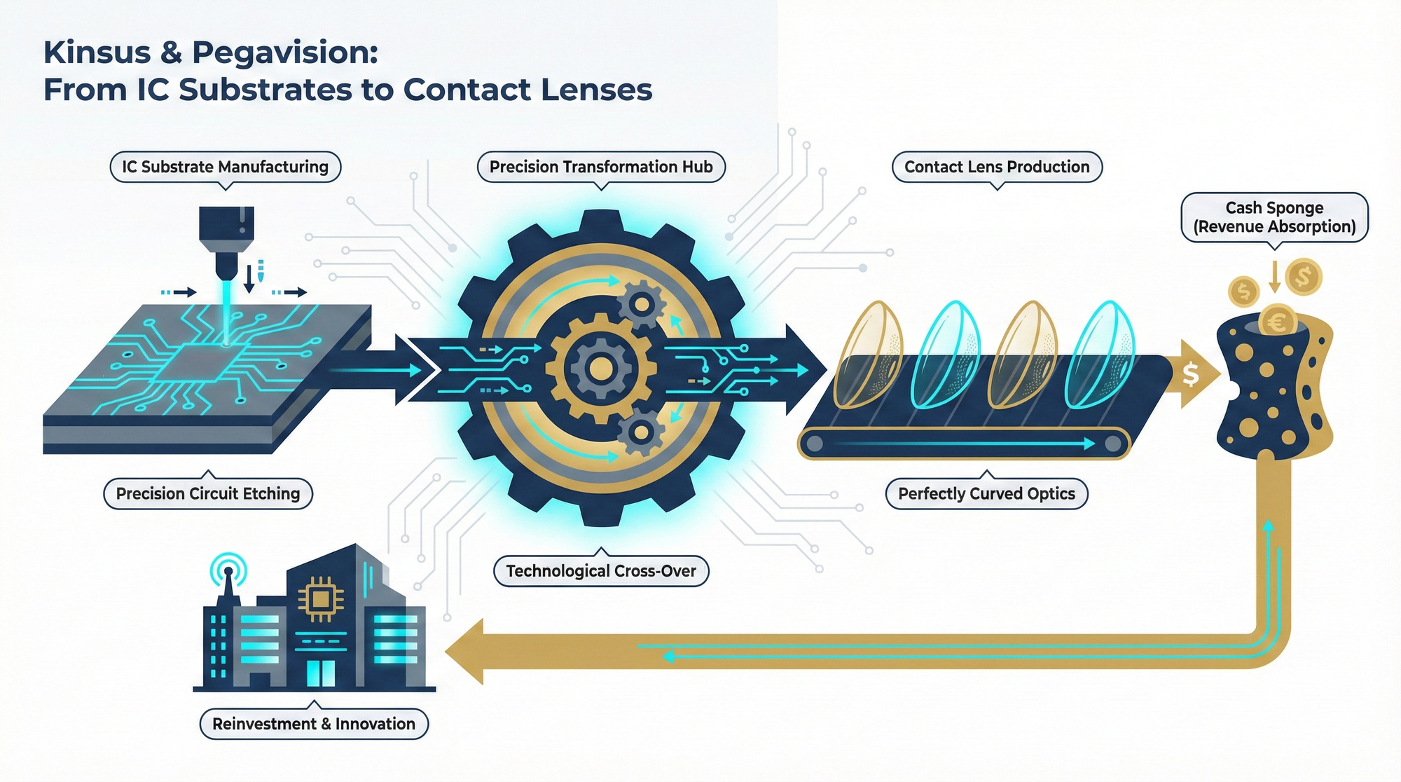 The Birth of Pegavision: Kinsus replicated its precise manufacturing management capabilities to contact lenses, giving birth to its subsidiary 'Pegavision'.