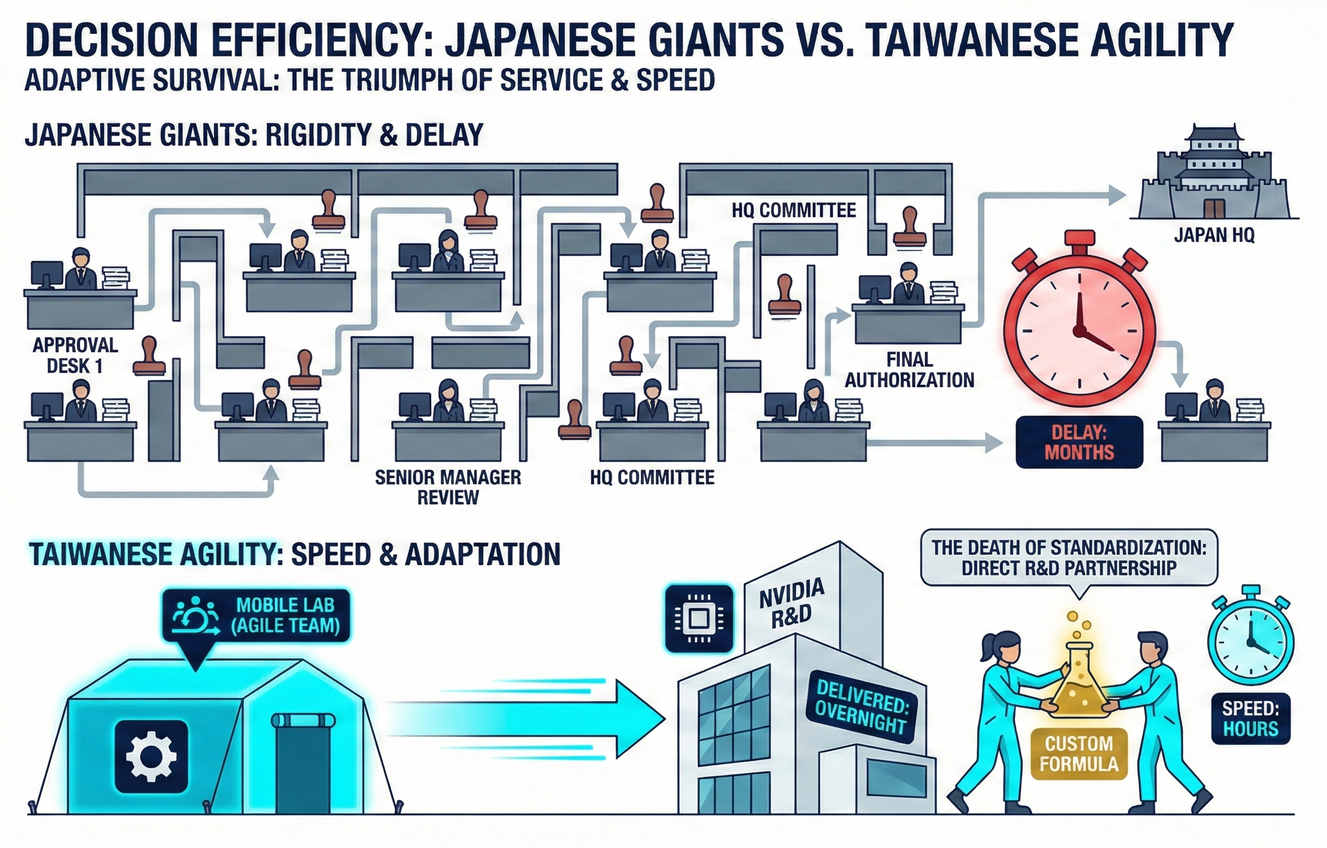 - Fatal Flaw One: Inability to Match AI's "Extreme Iteration Speed" The pace of the AI industry is frenetic. NVIDIA and cloud giants might revise motherboard trace designs every few months, which demands that CCL material manufacturers "fine-tune" chemical formulations in real-time. The approach taken by Taiwanese manufacturers (such as Elite Material and TUC) is to dispatch their top-tier FAE (Field Application Engineer) teams to literally "pitch tents" outside clients' R&D centers. The moment a client encounters an issue, the Taiwanese company returns to the lab that same evening to modify the formula, delivering new samples immediately the next day. In contrast, Panasonic, as a vast traditional Japanese conglomerate, has a corporate culture that is rigorous but also extremely rigid. Modifying a single formula might require multiple layers of reporting and approval from its Japanese headquarters. Such a lengthy decision-making chain is undoubtedly fatal in the rapidly changing AI battlefield.