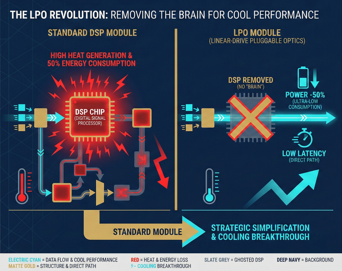- 50% Power Savings: Through this "brain removal surgery," LPO modules can save nearly half the power and significantly reduce transmission latency.