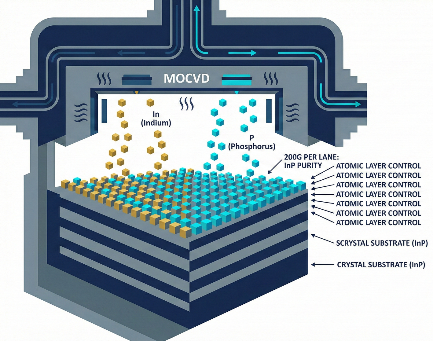 - The Art of Atomic Layer Stacking: Arima Lasers uses MOCVD equipment to heat substrates in a chamber, stacking III-V elements layer by layer, one atomic layer at a time, to form epitaxial layers. In the 1.6T era, with data rates per lane soaring to 200G, this demands an almost obsessive level of precision for the epitaxial layer's "atomic-level flatness" and "doping concentration control."