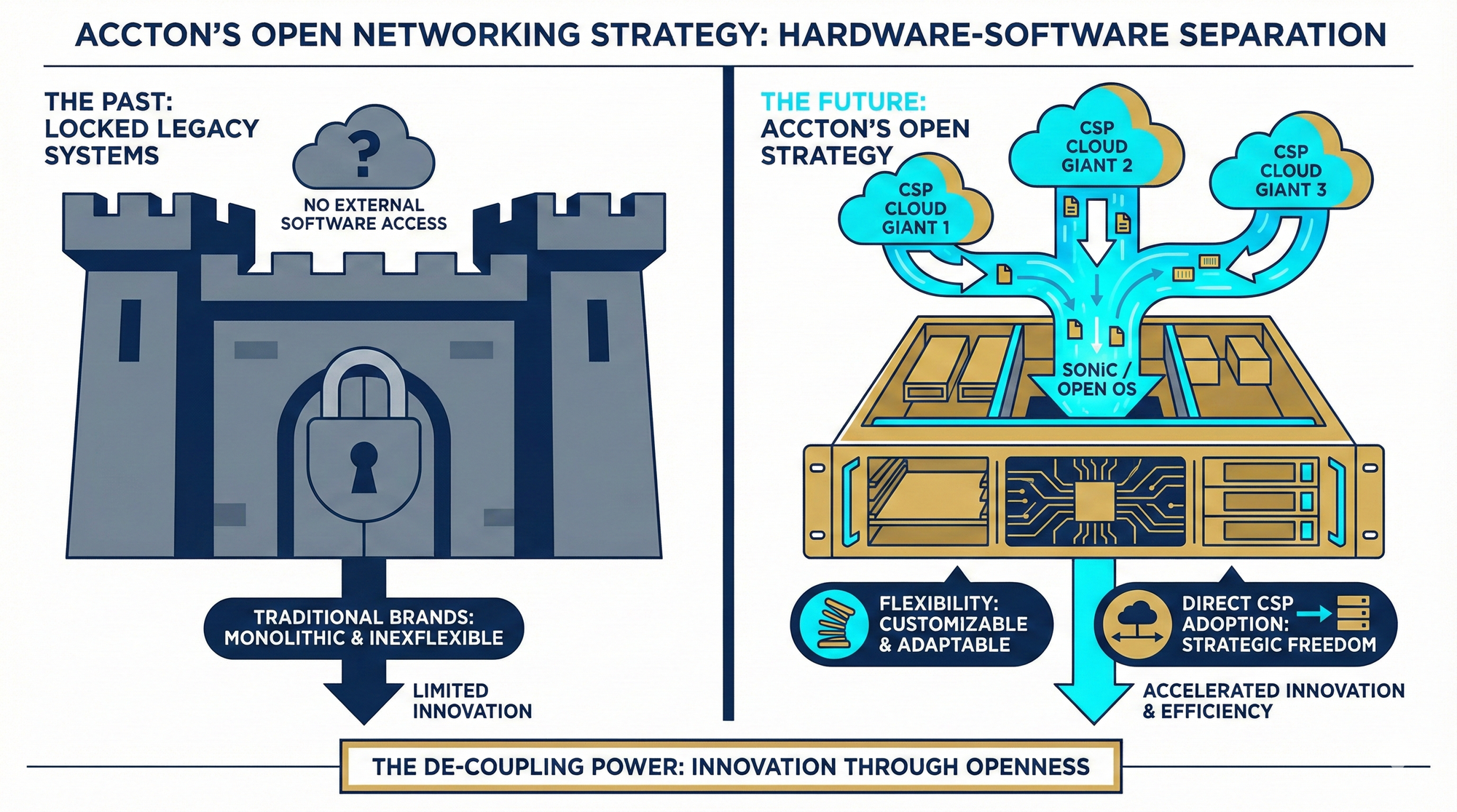 Accton Technology's core logic for success lies in "decoupling". The era of vertical integration, once dominated by Cisco, is nearing its end; now is the age of white-box switches.