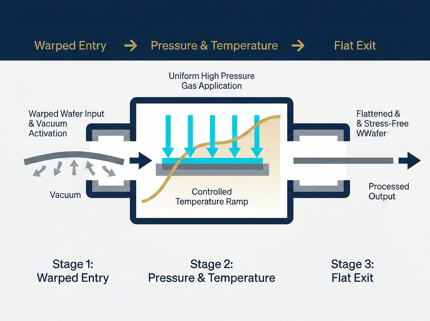 - Precise Pressurization and Heating: Next, the machine injects high-pressure nitrogen gas, applying an "absolutely uniform gas pressure" to the wafer surface, while simultaneously beginning to slowly and precisely increase the temperature.