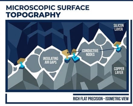 If you examine a chip surface under an electron microscope, you'll find it's not flat at all. It's like the surface of the moon, full of craters, bumps, and rough textures. When a copper lid is pressed onto the chip, these two seemingly smooth surfaces actually make true contact over only 1% to 2% of their area in the microscopic world! The remaining 98% is entirely "air."