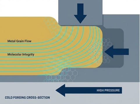 The Physical Magic of Cold Forging: Kenmec's proprietary process involves "squeezing" a copper block into a mold at room temperature using thousands of tons of immense pressure to form it. This is akin to kneading dough; the metal's crystal lattice is not severed but flows along the mold, forming dense "flow lines."
