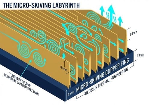 What is Micro-Skiving? Imagine a chef with unparalleled knife skills, using a skiving tool to rapidly "shave" wafer-thin copper fins from the surface of a copper block. The key is: **these copper fins are not cut off!** They remain attached to the base and are forcibly "stood up" by the skiving tool.