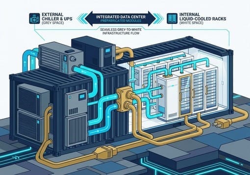 - Grey Space (Facility Side): Refers to the infrastructure "outside" the server room, such as massive chillers, generators, UPS (uninterruptible power supply) systems, and power distribution panels. This falls under the traditional scope of mechanical and electrical engineering.
