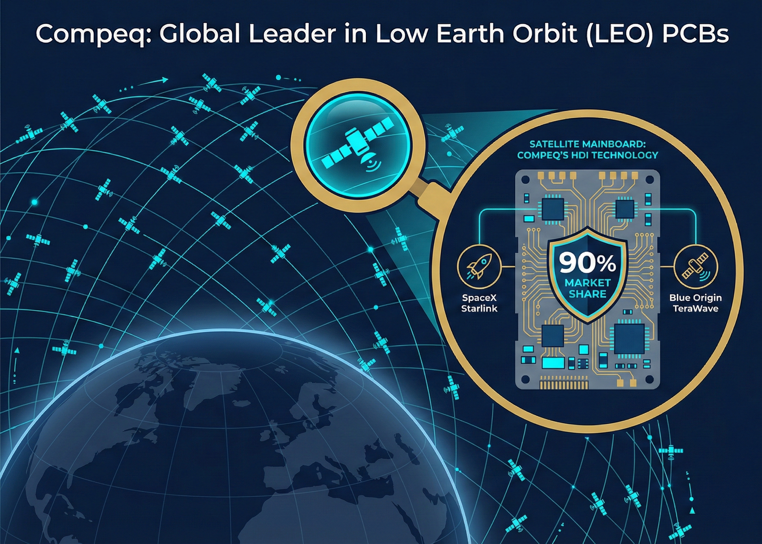 When AI servers, in their pursuit of ultimate computing density, are forced to fully adopt high-end HDI technology for the OAM modules beneath their GPUs, Compeq (2313) has no need to relearn. It simply seamlessly transfers its smartphone manufacturing technology to AI server boards, which boast extremely high unit prices and technical barriers. What's even more formidable is that before entering the AI market, Compeq (2313) had already used this HDI technology to dominate another trillion-dollar market beyond Earth—Low Earth Orbit (LEO) satellites.